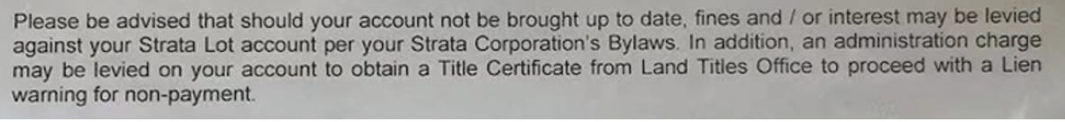 The story is as bizarre as it is worrying for homeowners in our complex. I have been told the Strata Property Act (SPA) Section 116 does not cover unpaid fines as a lien-able offence. So, why resort to such a draconian measure?